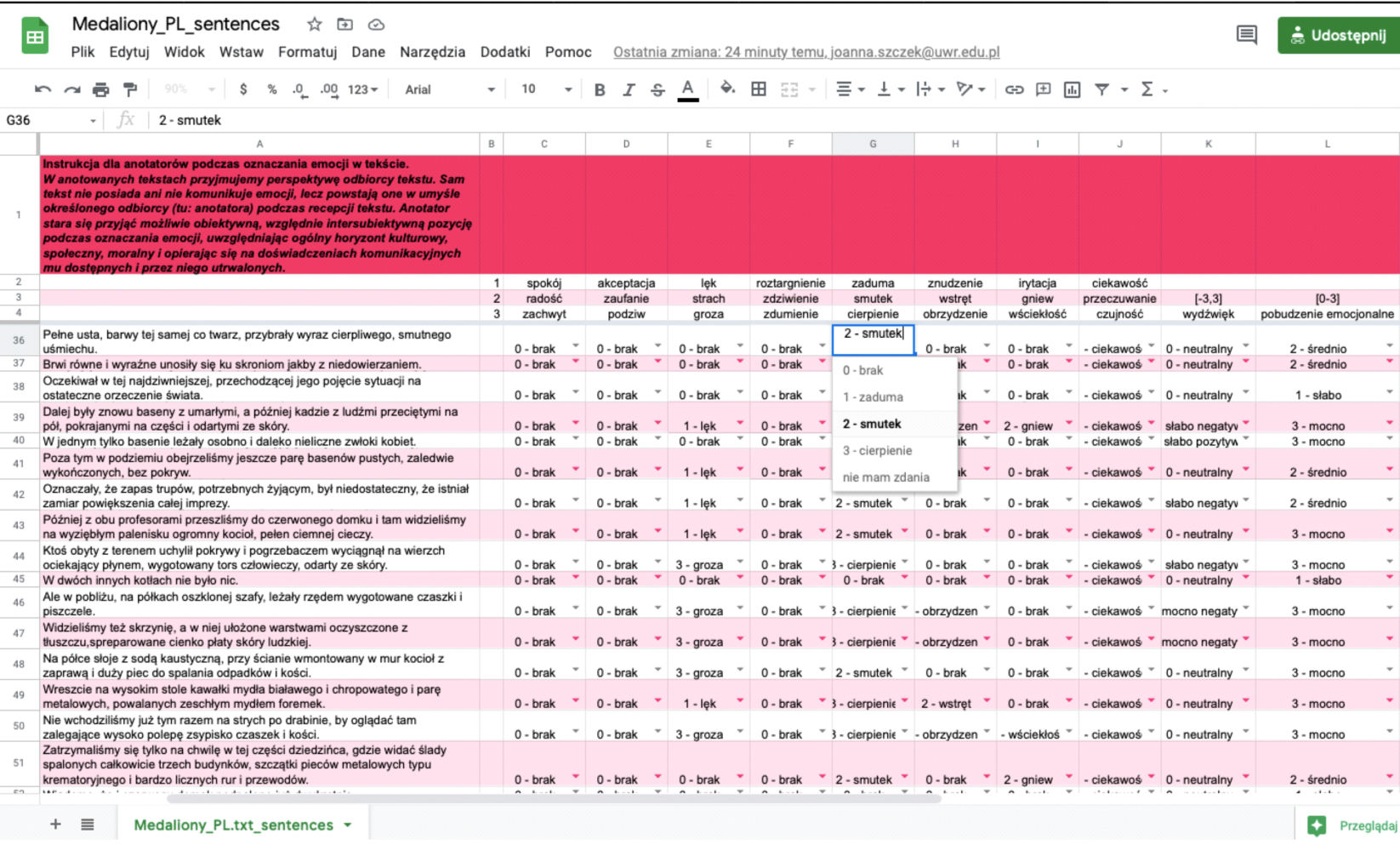 Korpus EmoText przygotował zespół pracowników Wydziału Filologicznego Uniwersytetu Wrocławskiego w składzie: